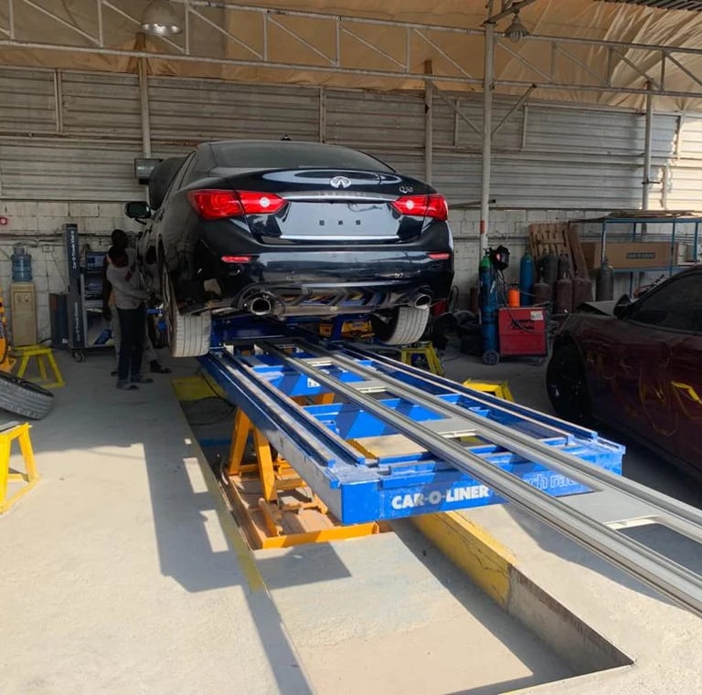 At Nejoum Aljawharah, we handle everything from engine oil changes to advanced chassis repairs and ccm (Computerised Chassis Measurement) with care.